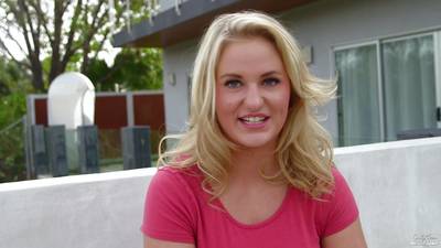 La belle blonde Payton Simmons suce avidement une belle queue bien dure et épaisse qu'elle fait gicler sur son jolie visage.