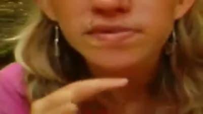 Cette jolie petite teen suce longuement une belle bite bien épaisse en plein air tout en la masturbant pour la faire gicler sur son visage.