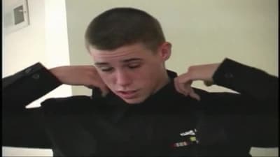 Le jeuen marin Mark Woods, laisse tomber son uniforme pour vous laisser admirer sa grosse queue pendant qu'il se masturbe devant vous.