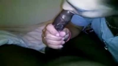 Quel talent ! Regardez cette sublime nana aspirer la grosse et longue queue noire de son mec tout en lui malaxant les couilles pour le faire jouir.