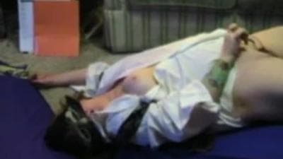 Une amatrice se caresse sur le sol, dévoilant ses jolis seins, avant de trouver une bonne bite à sucer.
