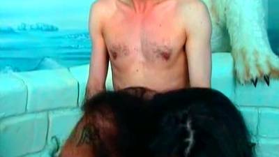 Voici un couple qui baise après un bain. Ce qui surprend c'est que la chambre ressemble à un iglou avec un ours polaire...