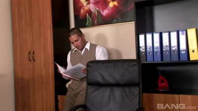 Une secretaire brune pour signer un contrat et qui finie par se faire prendre sur le bureau par tous les trous