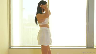 Magnifique teen brune a la chatte d'or et au cul d'enfer se fait masser avec douceur et affection !!