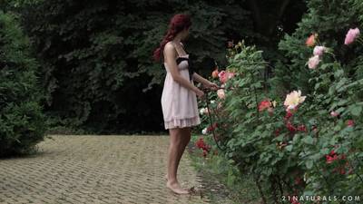Shona River, la rousse, arrose les plantes dans l'allée. Elle finira par s'arroser sa jambe avec la semence