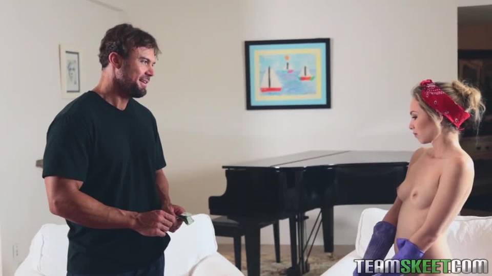 Une petite femme de ménage se fait rentrer dedans par son employeur à coup de billets de banque ou joindre l'utile à l'agréable.