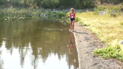 Au bord d'un lac canadien une belle fille