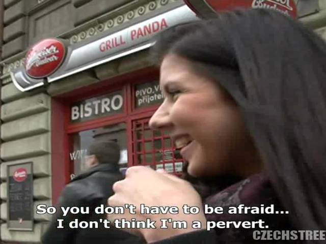 Une femme brune va se faire accoster dans la rue pour discuter un instant, elle va finir par le sucer