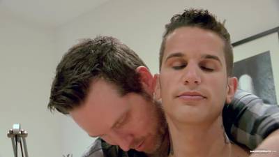 Homosexuel musclé franchement bien monté qui se voit offrir quelques caresses de la part de Pascal, qui y prend pas mal de plaisir