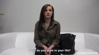 Cette magnifique brunette passe un superbe moment pendant son casting et pour finir son casteur va ejac