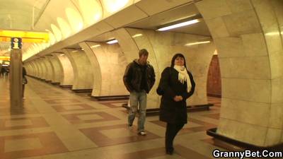 Croisée dans le métro, cette mature bien en chair va faire l'affaire de ce blondinet qui a envie de tremper son biscuit dans un gouffre accueillant.