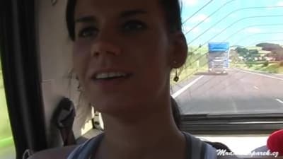 Cette jeune brunette tchèque n'avait pas l'intention de ne pas profiter de ce petit coin de nature pour se masturber et baiser son copain dans l'herbe